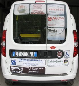 Gli sponsor hanno permesso di ottenere un veicolo attrezzato per la mobilità di cittadini non autosufficienti attraverso le inserzioni pubblicitarie apposte sulla carrozzeria del mezzo.